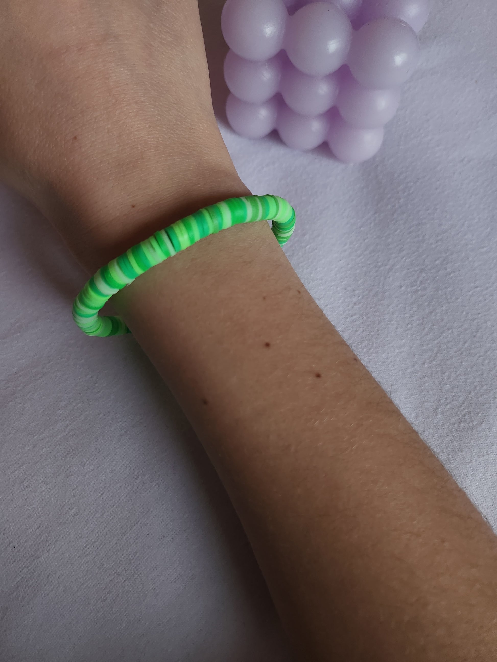 Yellow, pink, gold, green and blue clay beads bracelets
