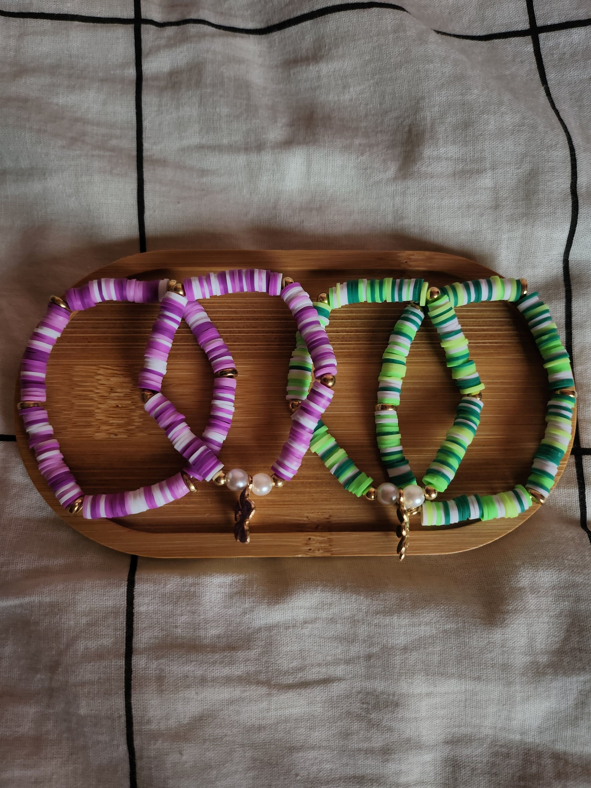 Two sets of bracelets, with two bracelets, purple and green. 💜💚